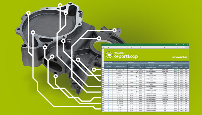 PolyWorks|ReportLoop™ is a free interoperability solution that allows you to inject smart 3D inspection data into Excel spreadsheets to complete your preformatted corporate reports or to analyze the performance of your 3D measurement processes.